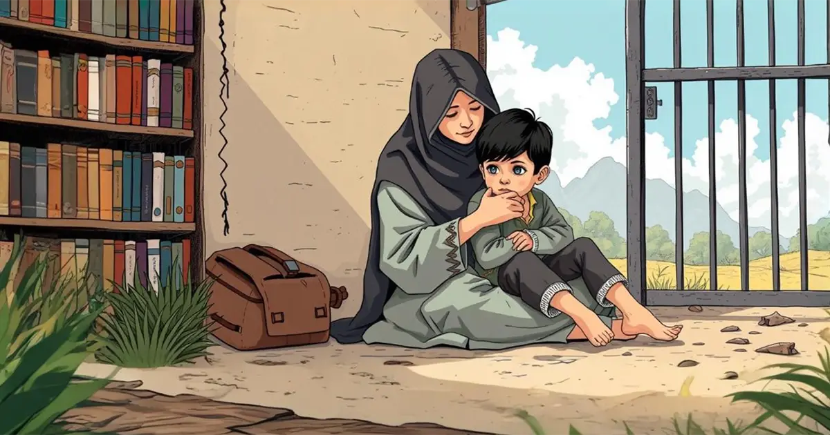 چند روز پیش، هوای خوبی بود. در گرمای ظهر به کتاب‌خانه می‌رفتم. زمانی که  به آن‌جا رسیدم، دیدم که دروازه‌ی کتاب‌خانه بسته است. به ساعتم نگاه کردم. ده دقیقه زودتر رسیده بودم. ساعت 3 کتاب‌خانه باز می‌شد. از آن‌جایی که باید منتظر می‌بودم، در کنار دروازه، در گوشه‌ای ایستادم و اطراف را نگاه می‌کردم. بعد از چند لحظه  زنی را دیدم که با پاهای برهنه، روی خاک نشسته بود و پسر کوچکی در بغل داشت. پسر چشمان آبی به رنگ آسمان ابری و موهای سیاه داشت. زن با یک دستش او را محکم گرفته بود و با دست دیگرش آهسته بازوی پسرک را نوازش می‌داد. هم‌چنان، زیر لب چیزهایی می‌گفت؛ اما شنیده نمی‌شد.