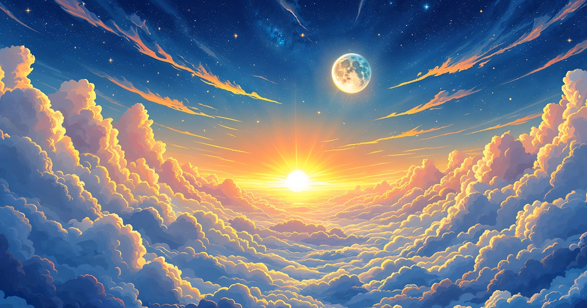 رویاهای من هم، درست مثل این آسمان وسیع، زیبا و بیپایاناست. من خورشیدِ آسمانِ رویاهایم هستم. حتی در شبهای تاریک، با نور مهتابِ درونم، به زندگیام روشنایی میبخشم. من در تاریکی نیستم و زندگیام با نور درونم روشن است.